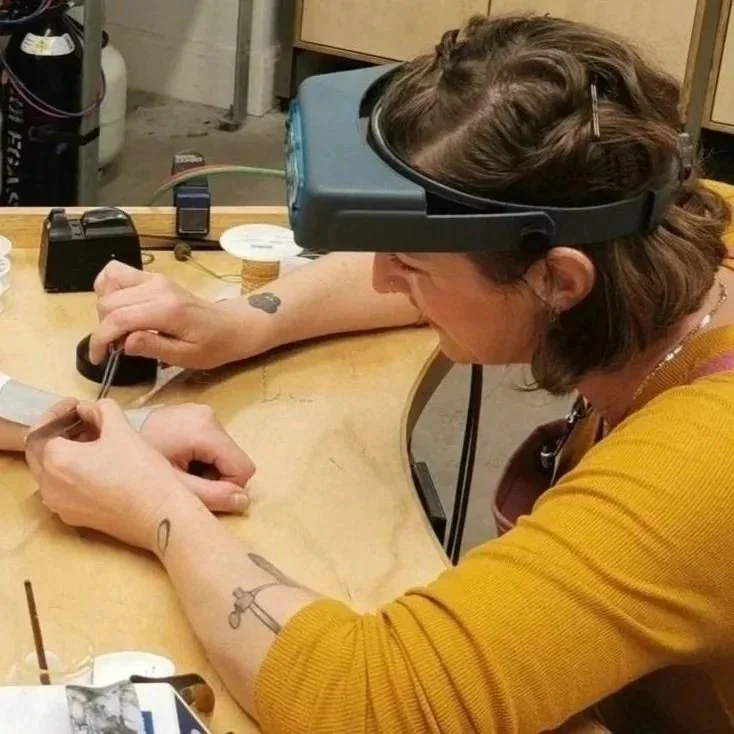 Each course begins with short, structured technical exercises and then fabricating, decorating and joining will be demonstrated. You will learn the basic skills needed to create your own sterling silver ring and the remaining time can be used to create your own simple design using your new skills. Everyone should complete at least two pieces of jewellery.